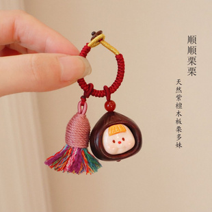 紫檀木雕卡通板栗多妹挂件可爱大蒜绿檀木手机链包包装 饰挂钥匙扣