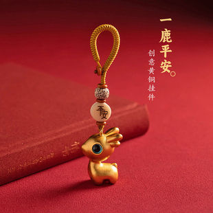 纯黄铜沙金一路实心小鹿汽车钥匙扣挂件男女包包吊坠