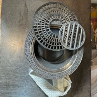 木墩火炉铸铁炭炉嵌入式 碳火炉 桌面茶台车轴石磨盘茶炉桌面回纹款