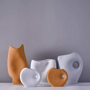 创意北欧极简艺术抽象陶瓷花器莫兰迪现代简约家居装 饰插花摆件