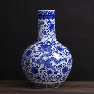 家具客厅玄关工艺品 中式 青花龙纹大花瓶 景德镇陶瓷落地大瓷器