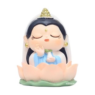 欢喜仙财爷家用好运莲莲观音模型办公室佛系摆件汽车装 饰