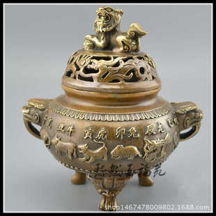 香炉仿古收藏铜器摆件古玩熏 炉十二生肖工艺礼品纯铜摆件