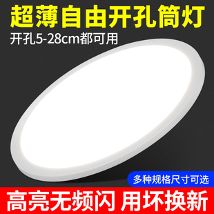 自由开孔面板灯家用客厅超薄2.3cm吸顶灯可调筒灯圆形嵌入式 孔灯