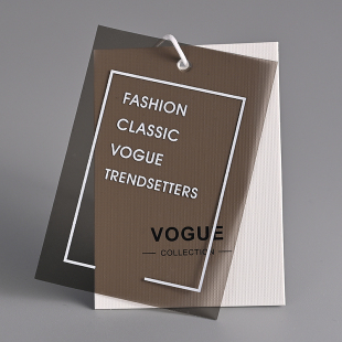 服装 店吊牌定制LOGO加厚压凹米白卡配半透明软胶吊卡标签现货订做