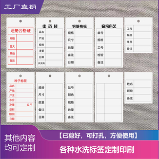 防水洗钢筋布标窗帘水洗标地笼种子中药材下料标牌规格工号可定制