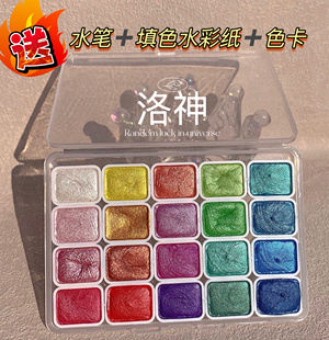 画尽繁华珠光水彩颜料固体分装 国画唐卡涂色美术专用24色敦煌水彩书法美甲水彩画填色水彩绘画珠光颜料 套装