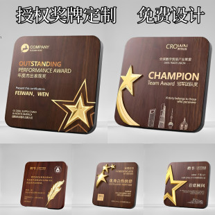 奖牌定制定做金属创意制作感谢纪念牌荣誉牌匾木托木质铜牌授权牌