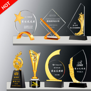 • 2025年会奖杯定制马年新款 水晶奖牌定做企业优秀员工团队颁奖刻字