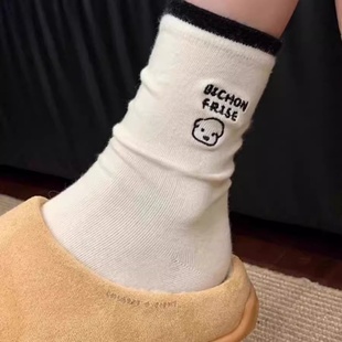 柔软透气不硌脚 小奶狗wa 好喜欢我 卡通图案超可爱 5双装