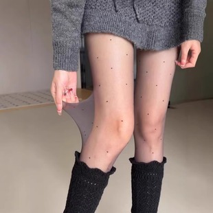 早春性感波点丝袜女防勾丝美腿薄款 袜搭配羊毛编织镂空小腿袜 连裤