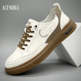潮流软底休闲黑色板鞋 奢品头层牛皮百搭真皮小白鞋 男士 ACENDRA